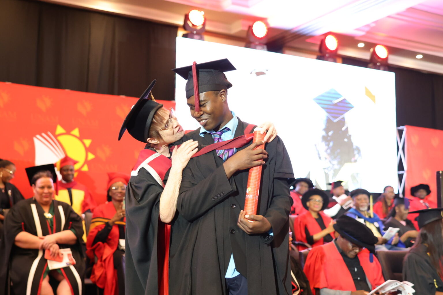 At UNAM’s Spring graduation ceremony on 08 October 2025, Joshua crossed the stage not only as a scholar of distinction but as a symbol of perseverance. Despite being visually impaired, he earned his Masters of Adult Education, completing his studies in record time and conquering barriers most can only imagine.